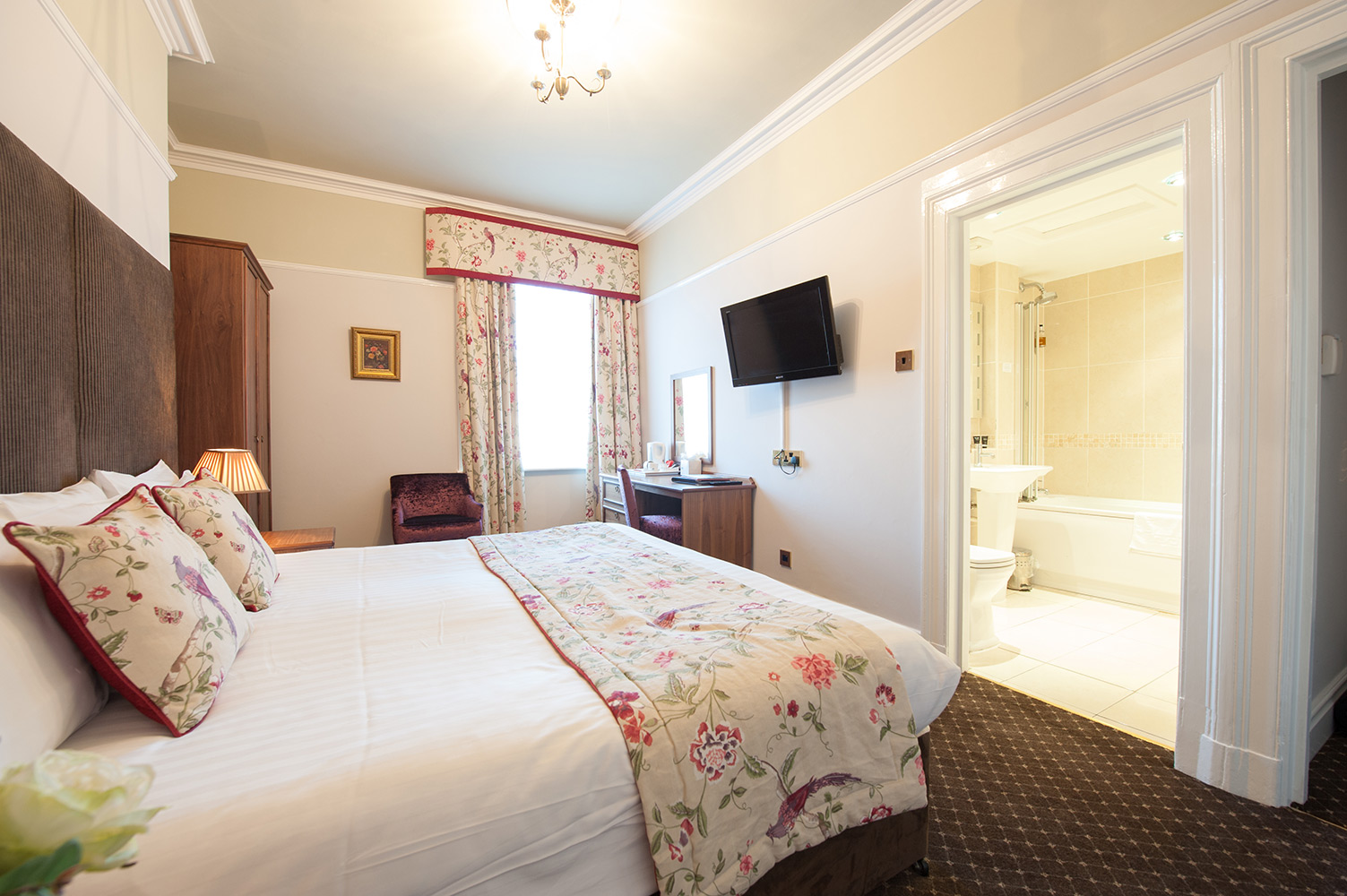 A non-smoking hotel with all ensuited rooms. Rates are inclusive of full English breakfast, Wi-Fi and VAT. Rooms are equipped with complimentary tea and coffee making facilities and have digital televisions including Freeview channels. WiFi is available throughout the hotel and is free of charge.